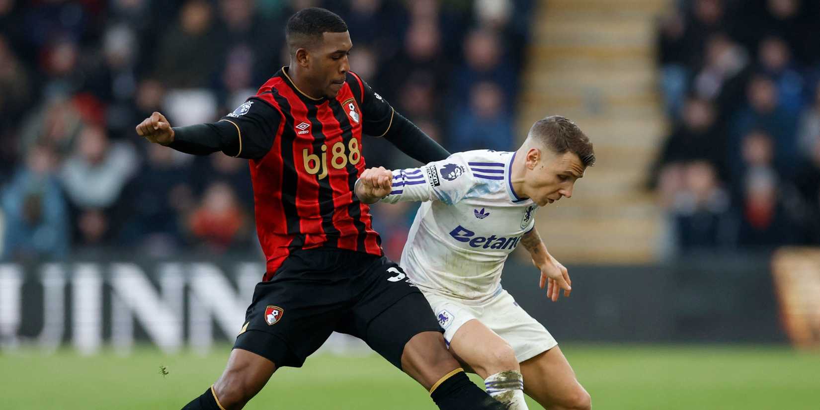 Widzę co zrobiłeś, Unai. Średnia wzrostu obrony Wisienek to 180 cm, dlatego Potężny Mings miał nam pomóc zneutralizować ich przy stałych fragmentach w okolicy naszego pola karnego oraz wywrzeć do spółki z Onaną presję na tychże nie za wysokich obrońcach Bournemouth przy ofensywnych stałych fragmentach. Skoro przy presji jesteśmy, Dr Mings w kluczowym momencie odpuścił doskoczenie do Rayana, który łatwo zdobył bramkę.